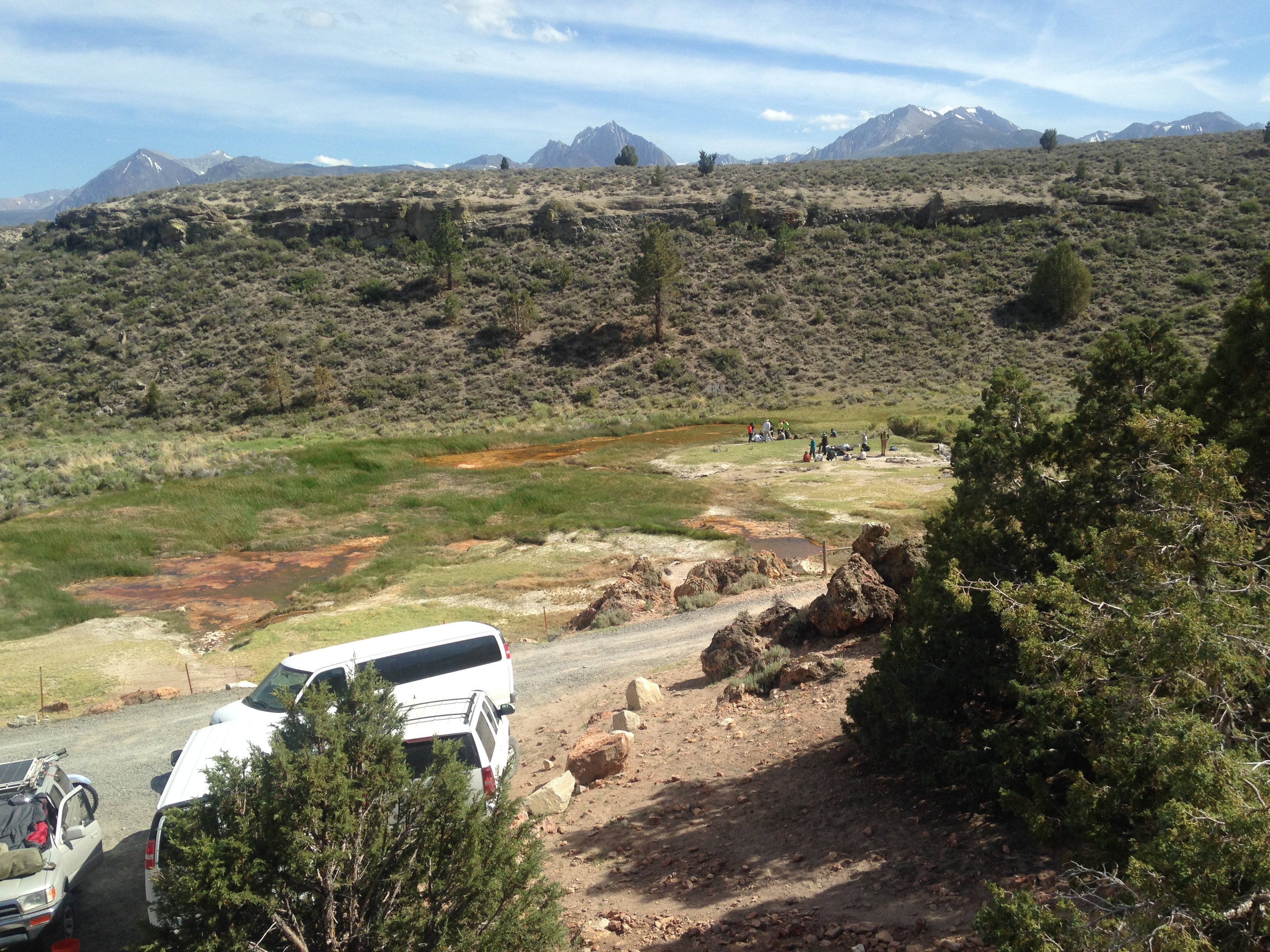 Here is a shot of us going out to Little Hot Creek. It was several miles of dirt road. I am glad I was not in the back of the van. The students back there were pretty green by the time we got there.
