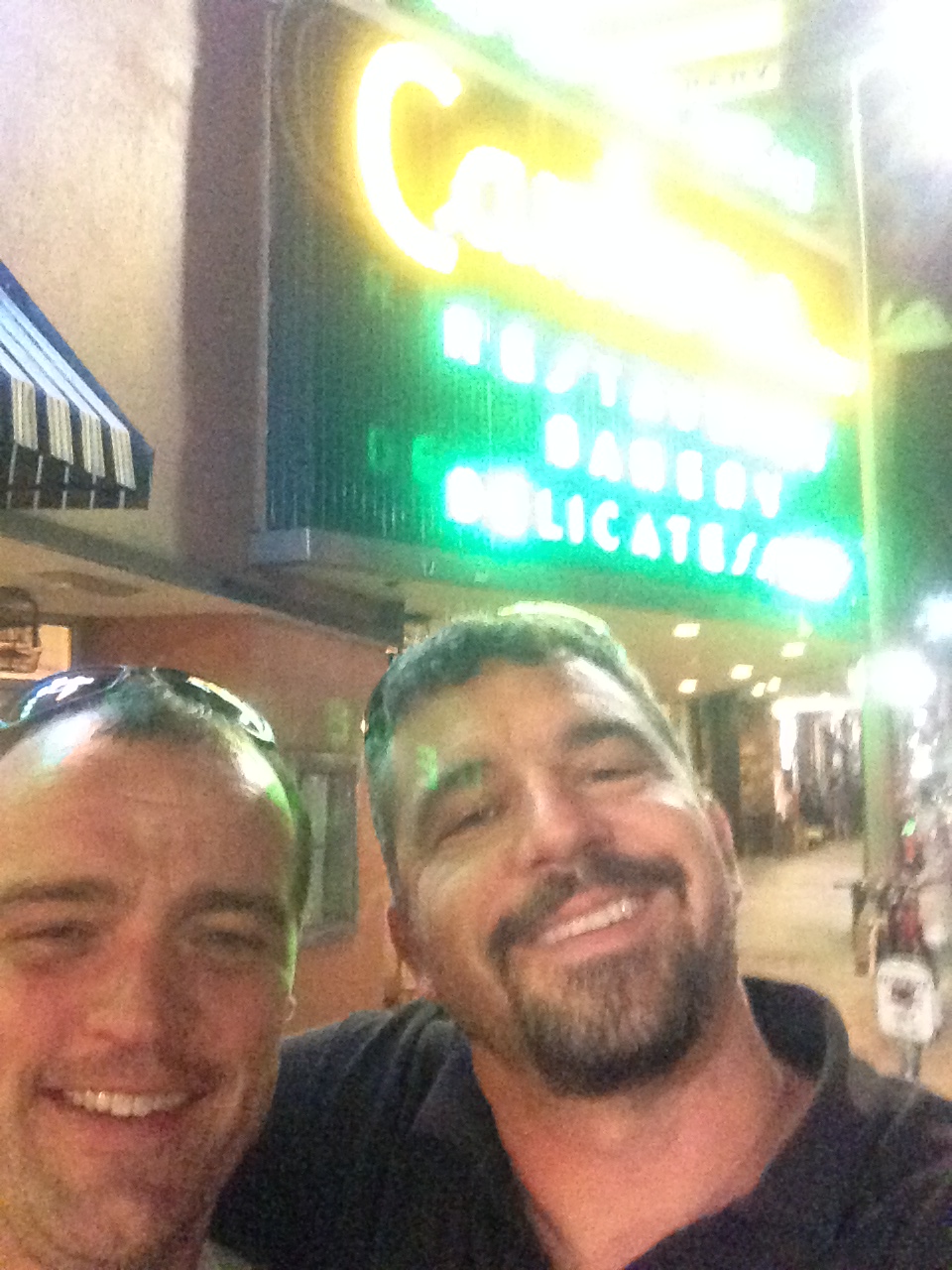 We had Saturday off after the first round of rotations. I took the opportunity to go see a dear friend from college Sean Bolger. Sean came out to LA to try to make it as an actor about a year and a half ago. I hadn’t had much contact with him since then and before so this was a great opportunity. Sean’s arm will be seen in “The Jersey Boys”, handing a guitar to someone. Seriously though, he is a great actor and is getting noticed. I figure I got to hang out with him RIGHT before he got famous. So, I rented a car, drove from Fullerton to the other side of LA and *poof*, there I was. We had pastrami sandwiches at an LA classic restaurant, Canter’s Deli. Guns ‘N Roses used to hang out there I am told. It was great and we got a chance to catch up.