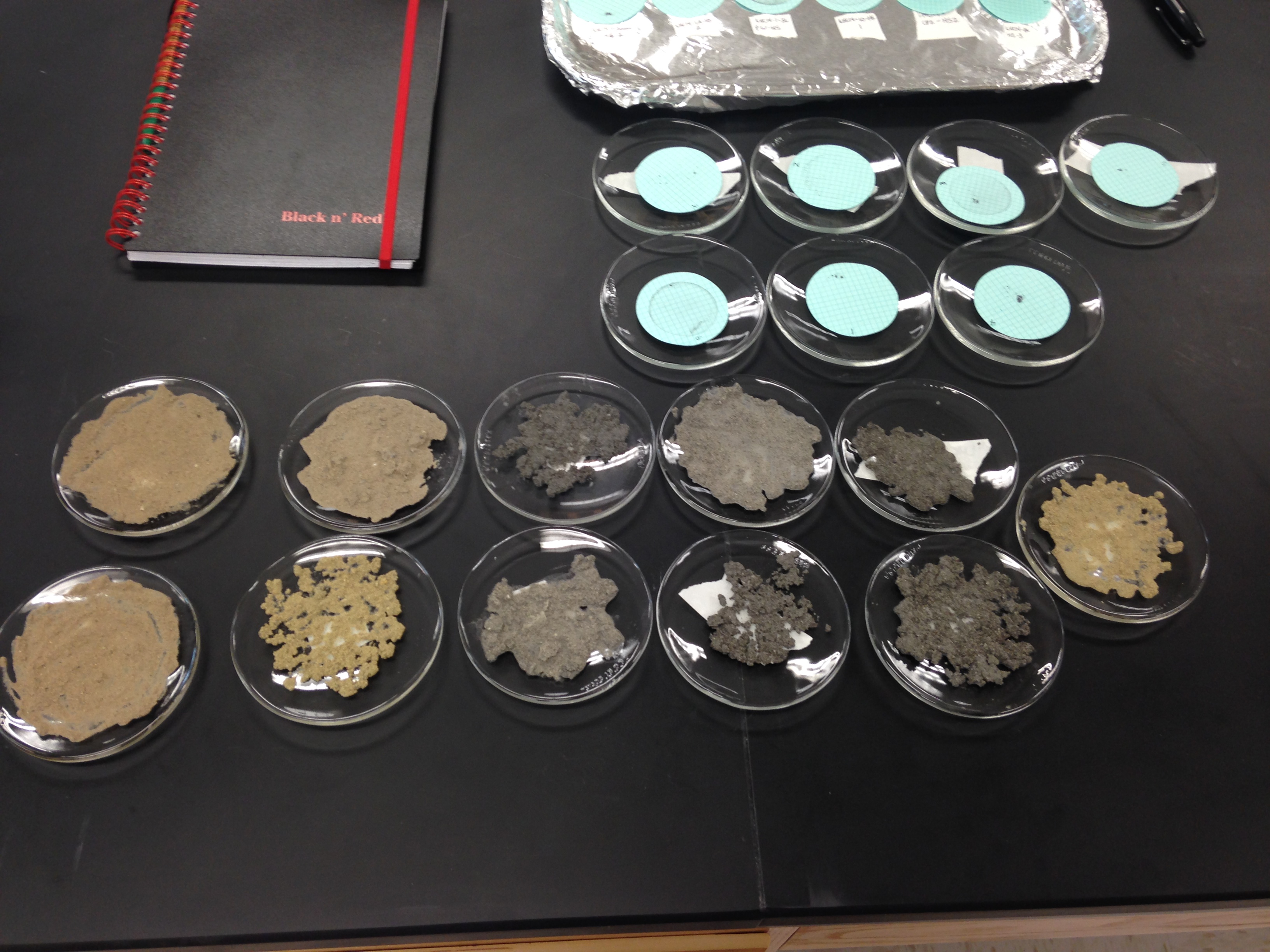 And last, a picture of some of the samples that are being prepped for chemical analysis. We extracted DNA, which took mucky and rocky samples and turned them into small volumes of clear liquid (containing DNA), the geologists still work with what looks like rocks but ground up. It will be interesting to see what they find and compare it to our work.