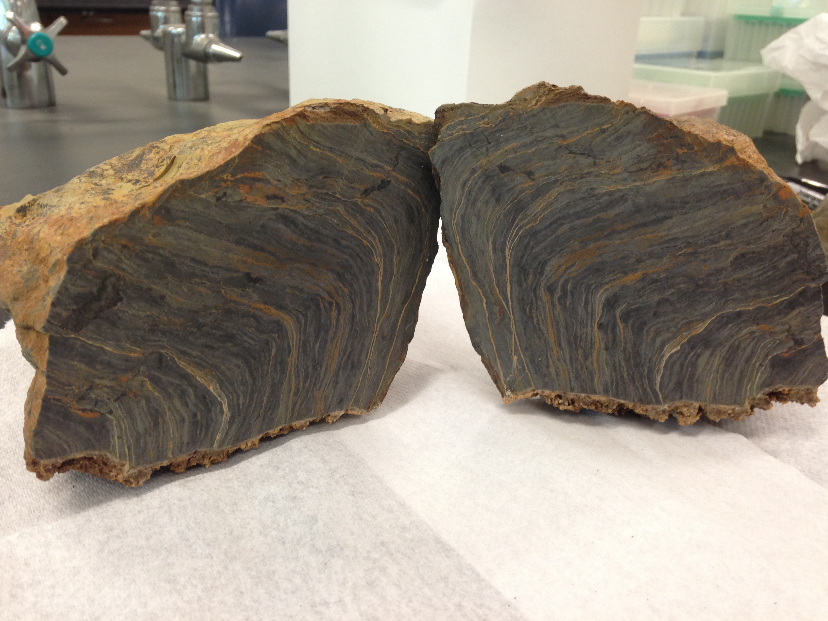 Then I cut two other stromatolites in half to see the individual layers and stromatolites (individual towers).