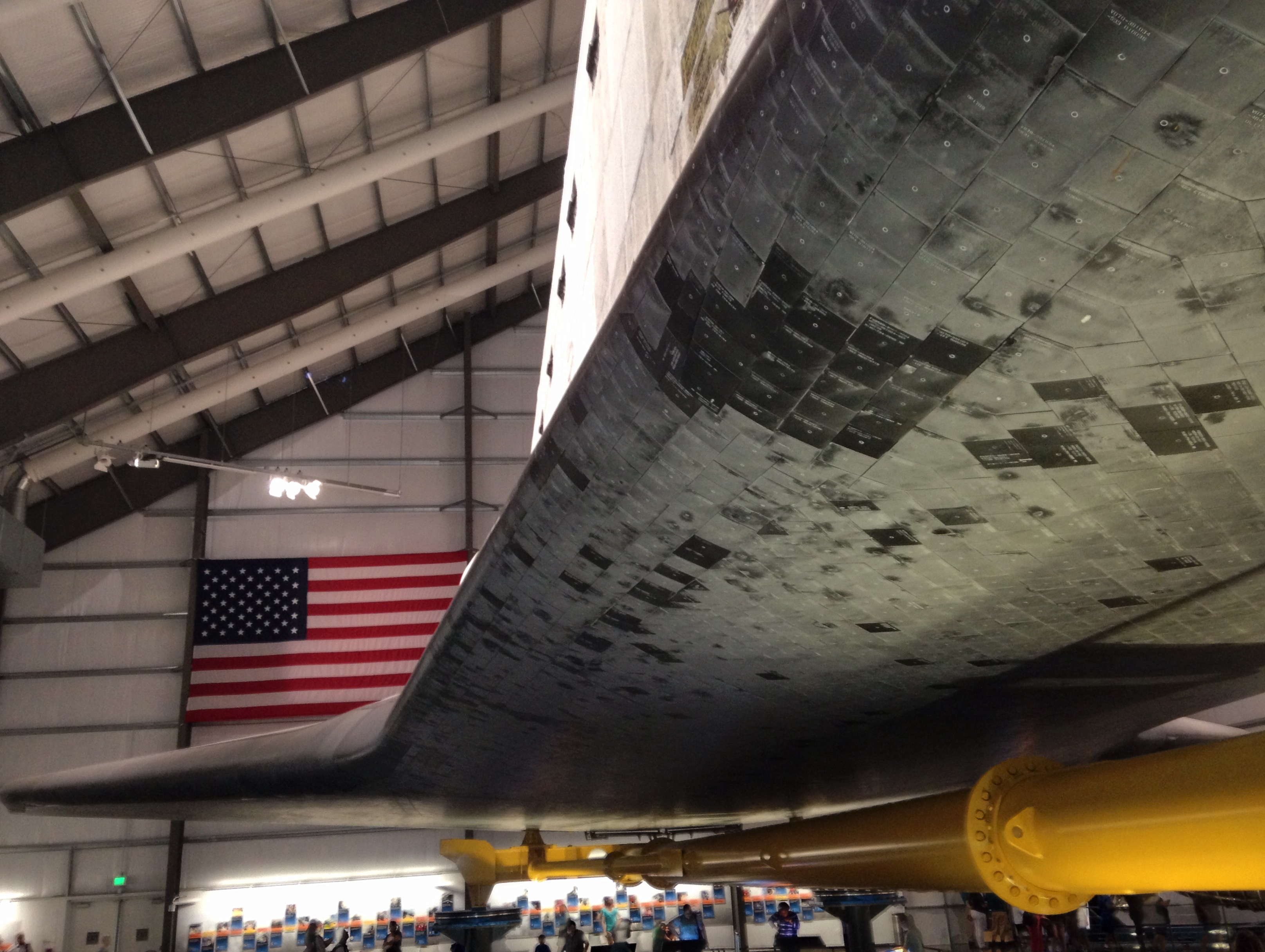 Then you get up close to it and you see the “patina” of many years of space flight. This includes scorch marks on the thermal tiles and locations where the thermal tiles have been replaced. I wish I knew which ones were replaced by the shuttle crew in space!